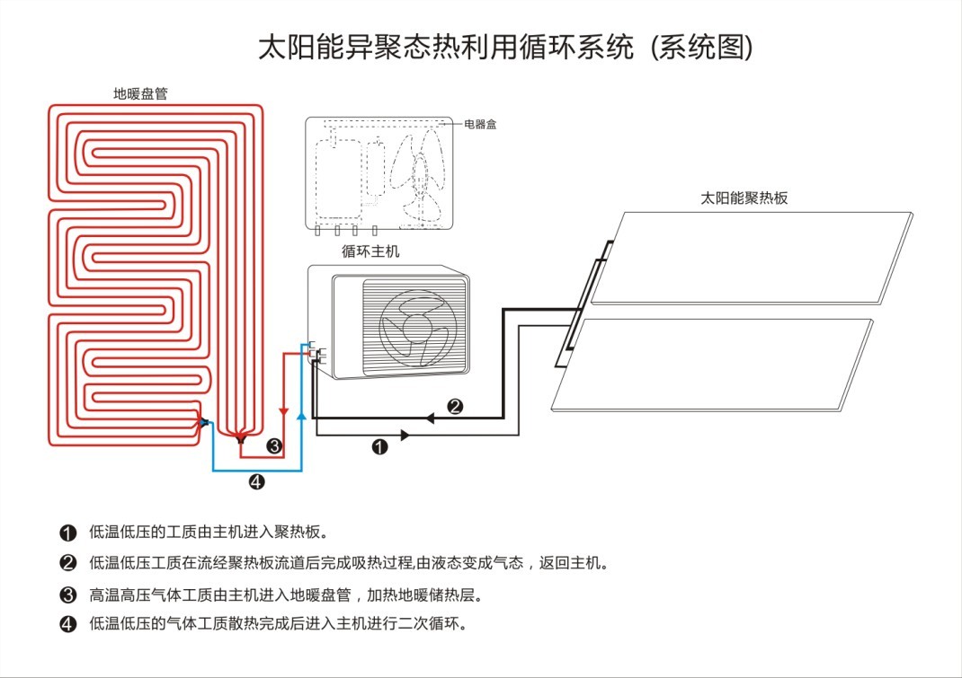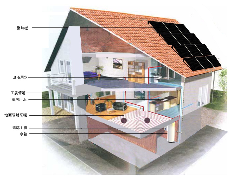 太阳能异聚态热利用取暖及热水系统(别墅) 1、 在满足取暖的同时,能制取生活所用的热水。 2、 在系统中采取加热管路先经过水箱,后进入取暖系统的方式,实现了边储热边加热的方式,同时保证了先满足热水即时使用,又保证了晚上剩余热水对取暖系统微补微调作用,减少了系统的运行时间,保证···
