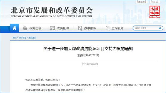 关于进一步加大煤改清洁能源项目支持力度的通知
