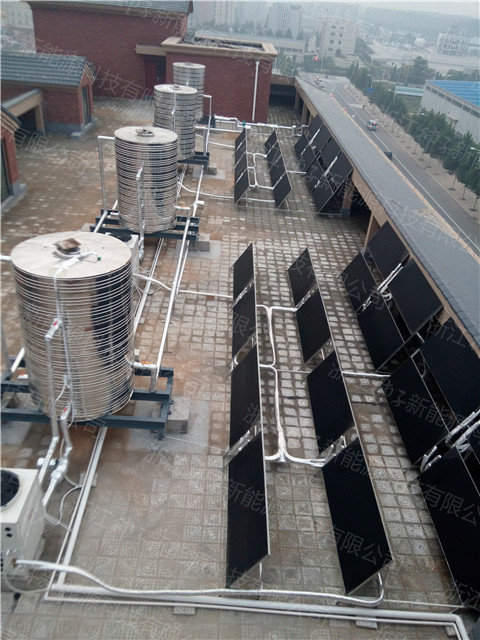 太阳能异聚态热水工程项目主要为男生、女生宿舍楼提供日常洗浴热水,每幢楼设置独立水箱,水箱容量为16000L。本项目配置的总储水量为32000L,聚热板32块,每块聚热板表面积1.6㎡,吸热面积3.2㎡,重8KG,厚度3mm, 与传统玻璃管太阳能和传统平板太阳能在外观及方案设计上均形成巨大反差,系统性能方面和空气源热泵更有天壤之别,异聚态系统在风和日丽的天气下热水升温快速,更惊人的是在阴雨天热水升温速度依旧成递增趋势,且系统使用成本仅为空气源热泵的60%,柿子的传奇高能效已在行业内引起广泛关注。