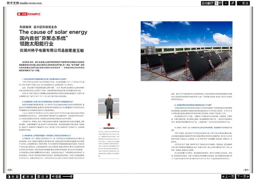 采访当日,公司员工们正不畏严寒,在科创园公寓楼顶安装工程。公司员工介绍说:“就算是在阴冷的外界环境下,太阳能异聚态运行系统水箱中的水也可以达到55度左右。”这项技术开创了我国高效节能、安全便捷的太阳能应用新品类,实现了太阳能热利用的颠覆性技术创新。经浙江省科技信息研究院查新论证,该技术为国内首创。而取得如此巨大成就的团队领军人物便是公司总经理唐玉敏。