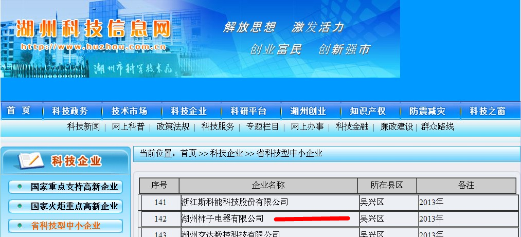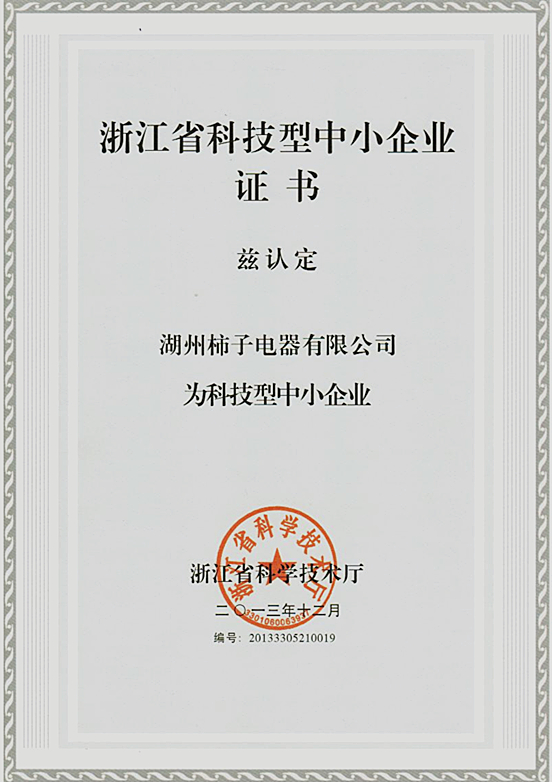 根据浙江省科技厅关于印发《浙江省科技型中小企业认定管理办法》的相关要求,湖州市科技局组织了有关专家对各区县近300家申报企业进行了综合评审,湖州柿子电器有限公司最终入选成为浙江省首批科技型中小企业。