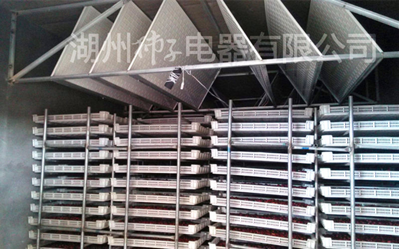 恒温烘干阶段:此时进入升温阶段,温度升高至55℃~60℃,最高不超过60℃,此时由于红枣非结合水水分大量蒸发,房内湿度增大,打开排湿通道,将湿空气排出,以达到除湿的目的。