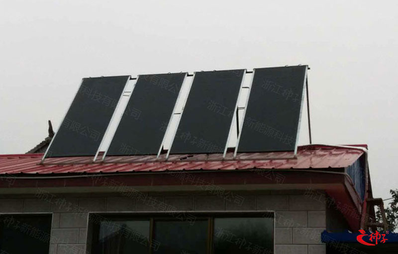 此项目为居民110平方米的建筑提供无水采暖服务,创新设计的太阳能聚热板整齐得摆放在屋顶上,美观独特,太阳能异聚态无水采暖系统实现了太阳能与建筑的完美结合,使绿色采暖走进家庭。